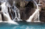 En dan Hraunfossar …. Ik had er op het “IJsland-promotie-filmpje” in het vliegtuig al wat van gezien en mijn verrukking geuit, maar nu ik hier zelf voor sta …. het gaat alle verbeelding te boven. Watervallen zover het oog kan zien ! Over een afstand van 900 meter komt het water – ja, waar vandaan …. ? Het komt uit de lava-velden de rivier ingestroomd.