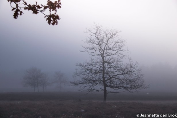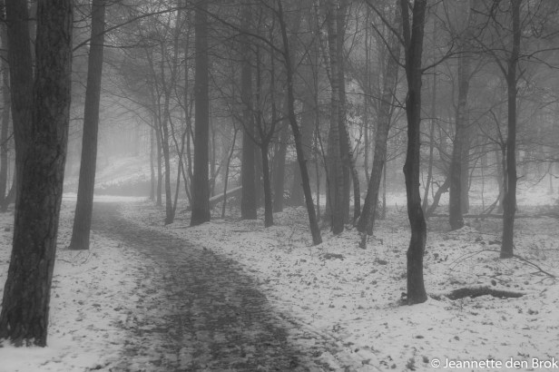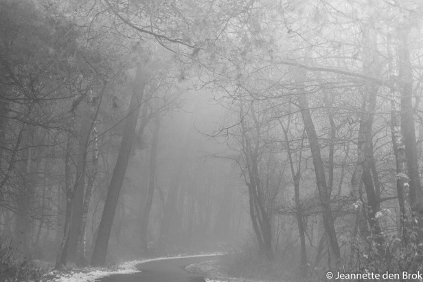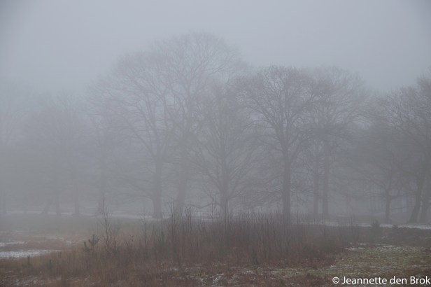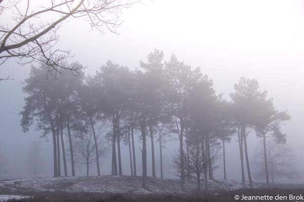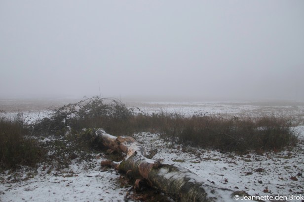 Het heeft gesneeuwd …. een héél klein laagje, maar toch leuk om een winterse wandeling te maken. Ondanks een nog steeds pijnlijke enkel na een blessure een paar weken geleden, ga ik er toch even op uit. Volgens de fysio therapeute is het ook goed om na een paar weken betrekkelijke rust de enkel weer langzamerhand wat te gaan belasten. Dus nog maar even met de auto richting Herperduin zodat ik daar een korte wandeling rondom het Ganzeven kan maken. De camera uiteraard mee, want behalve dat hele kleine laagje sneeuw – wat overigens inmiddels al snel aan het afnemen is – is het ook een beetje mistig en dat levert altijd sfeervolle plaatjes op.