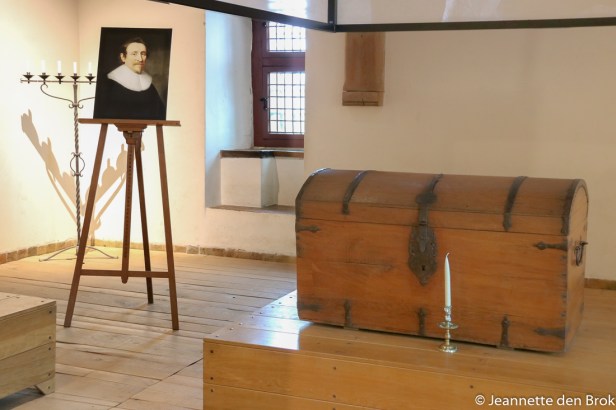 Een paar dagen later was Slot Loevestein in Poederoijen aan de beurt voor een bezoek; ik was er met de broer van mijn vriendin met zijn gezin en haar dochter. Mijn vriendin zelf was er helaas niet bij, omdat ze niet helemaal fit was. Het kasteel wat op een prachtige plek ligt in het rivierenlandschap waar Maas en Waal samenkomen, is alleen al voor de omgeving de moeite waard om eens een kijkje te gaan nemen. Jammer genoeg viel op zondag 10 februari de regen met bakken uit de lucht, wat niet echt uitnodigend was om een wandeling rondom het kasteel te maken. Maar gelukkig is het kasteel zelf ook erg mooi om in rond te zwerven. Vandaag waren er ook enkele vrijwilligers aanwezig die veel wisten te vertellen over de geschiedenis van het kasteel en natuurlijk ook over Hugo de Groot, een van de vele politieke tegenstanders van Maurits van Oranje welke hier tijdens de 80-jarige oorlog met Spanje werden opgesloten, maar wist te ontsnappen in een boekenkist. Waarschijnlijk een van de bekendste verhalen uit de geschiedenisboekjes van school !