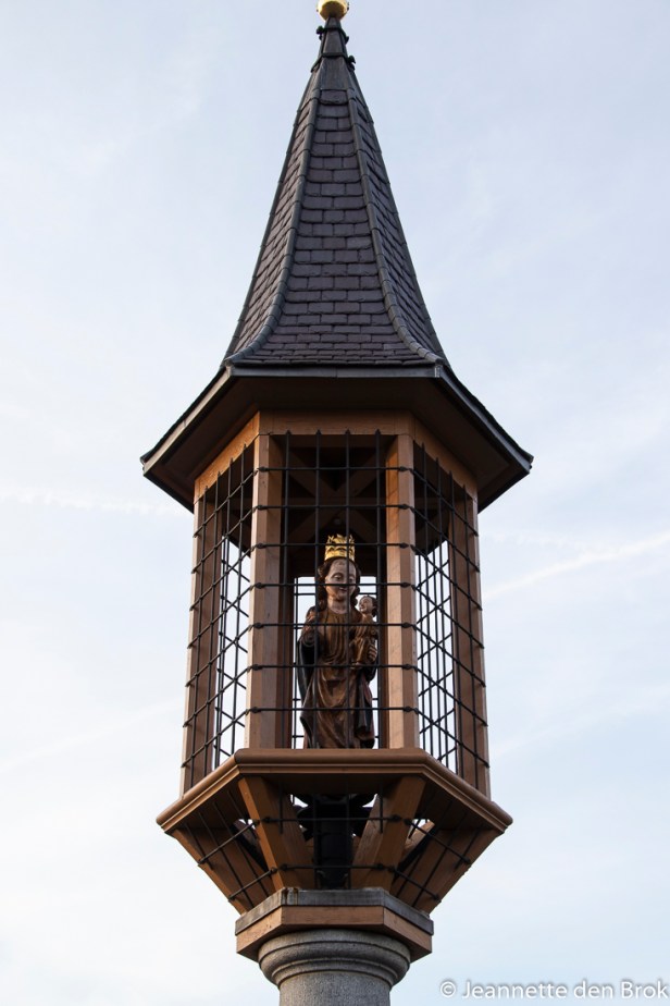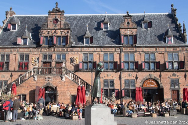 Den Bosch was volgens mij wel geslaagd, nu nog naar Nijmegen. Op Zaterdag de 16e stapten we dus opnieuw in de trein, nu de andere richting op. In Nijmegen ben ik helaas niet echt heel erg bekend; ik weet de Waalkade, Het Valkhof en de Waalbrug wel te vinden, maar wat er verder in het Centrum voor bezienswaardigheden zijn ? Gelukkig is daar weer die geweldige uitvinding Internet genaamd, waar je mooie lijstjes kan vinden met bezienswaardigheden. Dus na het bovengenoemde rijtje bezocht te hebben waren in het Centrum het Waaggebouw en de St. Stevenskerk aan de beurt met de hier achter gelegen Kanunnikenhuisjes. Op het plein voor het Waaggebouw staat overigens het standbeeld van Nijmegens bekendste persoon – welke nooit echt bestaan heeft; Mariken van Nieumeghen. Natuurlijk werd de inwendige mens niet vergeten en omdat het een stralende (lente)dag was zochten wij een plekje op een van de overvolle terrassen in het Centrum voor de intussen gebruikelijke broodjes kroket. Daarna werd de stadswandeling hervat, waarna we ook de Kruittoren in het Kronenburgerpark opzochten. In het park nog even genoten van het heerlijke weer, door in het zonnetje gezeten op een bankje de talrijke eenden en meeuwen te voeren. En intussen weet ik dus nog steeds niet welke stad nu het mooiste is, met zulk mooi weer als vandaag is elke stad mooi !