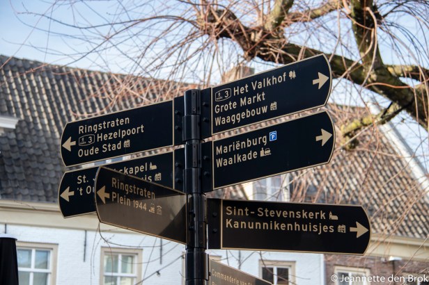 Dus op Woensdag 13 februari toog ik met mijn vriendin Thea en haar dochter Natalie uit Kreta naar Den Bosch en op zaterdag de 16e februari was Nijmegen aan de beurt. Sight-seeïng dus …. In Den Bosch weet ik nog wel aardig de weg in het Centrum en dus voelde ik me net een “gids” die een rondleiding door de stad verzorgde. Natuurlijk begin je op de grote Markt, zoek je de Dieze op (helaas geen tochtjes over de grotendeels ondergrondse zijrivier van de Dommel in dit jaargetijde) en mag een bezoek aan de St. Janskathedraal niet ontbreken. Ook had Natalie op internet al een paar leuke straatjes uitgezocht om op te zoeken. Net zo belangrijk overigens bij een bezoek aan de Brabantse hoofdstad is uiteraard de Bossche Bol. Voor Natalie de eerste, maar volgens mij ging die er goed in 😉