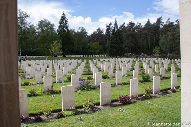 Wij maakten nog wat foto’s en liepen nog een keer langs de graven, werden tot in het diepst van onze ziel geraakt door het lezen van de laatste brief die bij het graf van Private Ken stond. De brief die hij op 4 mei 1945 schreef aan zijn vrouw Gwen en hun dochtertje. Ze hadden gehoord dat de Duitsers morgen zouden capituleren en hij verheugde zich op zijn thuiskomst…. Morgen is het over, dan kom ik thuis …. Hij overleed op 6 mei 1945 ….