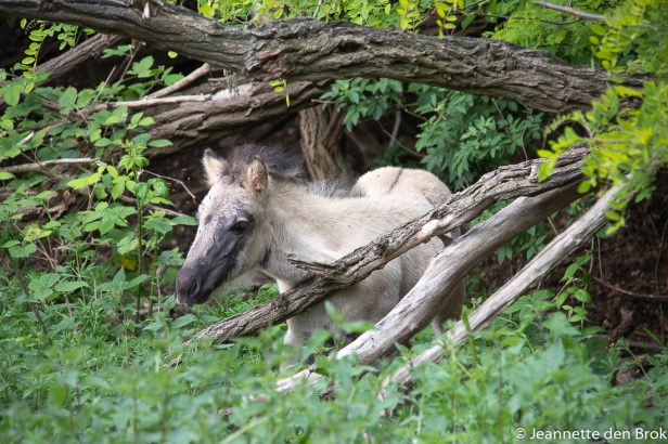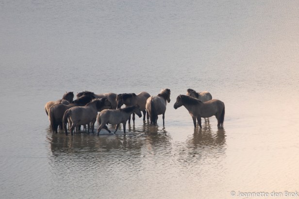 Vandaag wilde ik natuurgebied de Blauwe Kamer eens van een andere kant bekijken; vanaf de Grebbeberg. Daar heb je vanaf een observatieplateau een prachtig uitzicht op dit Natuurgebied en ik hoopte daar ook wat vogels te kunnen fotograferen in de bossen. Dat laatste viel wat tegen, de bomen zitten inmiddels al weer aardig in het blad, dus vogels hebben volop schuilmogelijkheden en hoewel ik enorm heb genoten van alle vogelgeluiden om me heen, kon ik er weinig duidelijk in beeld krijgen voor mijn lens. Wel kon ik de Konikspaarden “up close en personal” bewonderen. Een beetje te close eigenlijk naar mijn zin, want terwijl ik even stond te praten met een andere natuurliefhebber (van wie de tassen van zijn fiets af waren getrokken door de paarden) stonden er enkele van die brutale beesten aan mijn jas en rugzak te snuffelen. Mijn camera bleef dus maar even in mijn rugzak, want ook toen ik verder liep, bleven ze erg dicht in mijn buurt. Ben dus maar de trap op gegaan richting het Observatieplateau en gelukkig kwamen ze me op de trap niet meer na ….