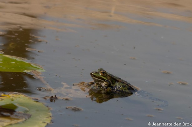 Een dagje niks doen, gewoon relaxen …. alleen maar kijken of er een vogel voor je lens wil komen. Inspannend – het rond turen om te kijken of er iets te zien en fotograferen is – maar voor mij eigenlijk vooral ook heel erg ontspannend. Alleen maar bezig met vogels kijken en mijn camera. En verder helemaal niets. Ja, behalve natuurlijk het uitvogelen wat je nu eigenlijk ziet …. En dat is véél meer dan wat je uiteindelijk kunt vastleggen. Mijn zus die bij me was, schreef in totaal zo’n 31 vogelsoorten op in het boekje en 2 waterbewoners. Handig zo’n wandelende Wikipedia bij je 🙂 De meeste vogels – vooral Steltlopers – bleven ver weg aan de rand van de grote waterplas en daarmee zelfs nog te ver voor de 600 mm lens met extender. Maar een enkeling waagde zich iets dichter bij de hut waarin we de dag doorbrachten. O.a. de Reiger die het waarschijnlijk voorzien had op de kikkers die zich vrij dicht bij de hut in het water vermaakten. En ook wat eenden (mijn zus heeft verschillende soorten genoteerd; ikzelf kom niet verder dan “eend”) lieten zich af en toe verleiden even bij de kleine vijver voor de hut een kijkje te nemen. Maar rechts van ons, op een afstandje zag ik iets bruins …. Dat zou toch niet ? Heel even wist ik niet goed hoe ik het had, ik dacht de Zeearend te herkennen ! Maar was het wel een Zeearend of toch de Visarend die hier vaker gespot werd ? Twijfel sloeg toe, maar na het beest wat dichter op de lens gehad te hebben, zodat we hem goed konden bestuderen waren we er van overtuigd hier met een Zeearend te maken te hebben. En nadat mijn zus met de eigenaar van de hut contact had gezocht wisten we het zeker. Inderdaad, de Zeearend ! Onze camera’s maakten overuren ! Aan het eind van de ochtend verdween de Zeearend echter en na onze lunchpauze waren we langzaamaan van plan om weer te vertrekken tot er iets anders onze aandacht trok …. Het onmiskenbare blauw en oranje van de IJsvogel ! Jawel, daar was ‘ie – op een tak enkele meters voor onze hut streek hij – nee, sorry het is een zij; het vrouwtje heeft een oranje ondersnavel in tegenstelling tot het mannetje bij wie de snavel geheel zwart is – neer. En zij had wel zin in te poseren leek het, alhoewel ze soms ook houdingen aannam die erop leken dat ze tot de aanval wilde overgaan. Even later leek ze te verdwijnen, maar een voorzichtige blik door de gordijntjes aan de andere zijde van de hut leerde ons dat ze zich daar neergevlijd had. Zo zacht en voorzichtig mogelijk, om haar niet te laten schrikken, verplaatsten we onze camera’s naar deze kant waarna we ook weer heel rustig en voorzichtig de gordijntjes daar openden. Om vervolgens de rest van de middag daar te blijven en de IJsvogel te bewonderen en op honderden – bijna identieke – foto’s vast te leggen …. Wat een mooie dag !!!