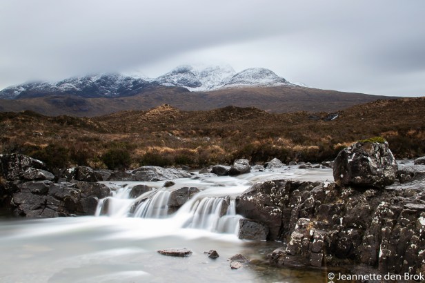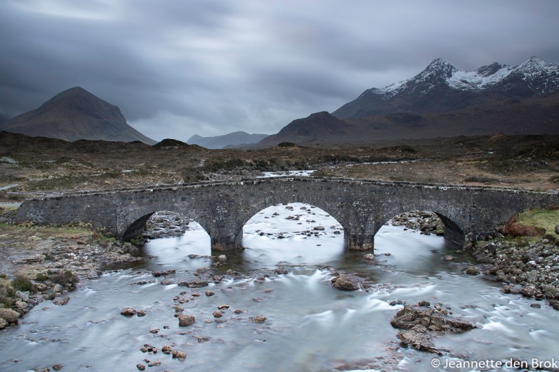 Vandaag ben ik alweer 3 maanden terug van mijn tripje naar Schotland. Via Facebook en Instagram had ik al een paar foto’s gedeeld, maar nu vond ik het wel tijd om iets meer erover te vertellen. Dus Schotland, Isle of Skye. Een fotoreis met Nordic Vision die al niet zo lang was, maar nog iets korter werd omdat de KLM besloot onze vlucht op de dag van vertrek te schrappen vanwege het slechte weer. Balen dus …. We vertrokken dus niet op de 15e, maar op 16 maart 2019 vanaf Schiphol naar Inverness. Vanaf hier was het nog zo’n 3 uur rijden naar Isle of Skye waar we onze intrek namen in Hotel Sligachan in Sligachan, zo’n beetje tussen de bergen van de Red Cuillin Hills. Een prachtige omgeving dus en voor onze eerste foto’s hoefden we dan ook maar de weg over te steken, waar zich een riviertje door het land slingerde waarin een aantal stroomversnellingen en watervalletjes prachtige plaatjes opleverden. Het bruggetje tegenover ons hotel bleek “beroemd” en gedurende de dag waren er dan ook bijna altijd wel mensen die speciaal kwamen om over dit bruggetje te lopen, waardoor je voor foto’s van een “lege” brug aangewezen was op de vroege uurtjes in de morgen of ‘s-avonds tegen zonsondergang. Bijkomend “probleem” was natuurlijk ook nog het Schotse weer. Iets wat ons tijdens de hele week daar parten speelde. Natuurlijk weet je dat als je naar Schotland gaat je regen kan verwachten, maar in ons optimisme verwachtten wij natuurlijk niet dat het al die tijd zou regenen en slecht fotoweer zou zijn …. En eerlijk is eerlijk, dat was ook niet zo. Het regende niet continu en ook niet hard, maar wel het grootste deel van de dag en dat is niet echt fijn voor je lenzen en filters. Je blijft poetsen …. Maar desalniettemin was het landschap zo mooi dat we toch met plezier aan het fotograferen waren en ons niet lieten beïnvloeden door het weer.