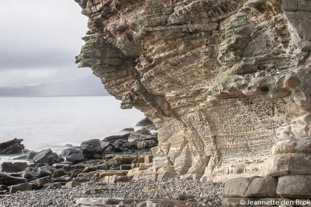 In Elgol bereikte ik niet dé ultieme foto-plek, maar dat gold voor meer van mijn reisgenoten. De rotsen waar we over moesten klauteren – met alle foto-apparatuur op onze rug – waren te nat en glad om een voor het gevoel veilige ondergrond te garanderen, dus na een paar (wel hele mooie) shots maar weer terug naar een wat drogere plek; er waren genoeg fotogenieke plekken in Elgol, zoals bijvoorbeeld de Honeycomb rock.