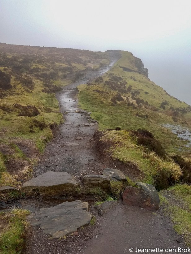 De derde dag op Isle of Skye reden we ‘s-morgens naar het Noorden van het eiland naar een plek die de Quiraing heet. Een heuvelachtig gebied ooit ontstaan door een aardverschuiving en het land is daar nog steeds (onmerkbaar) in beweging. Het is er héél erg groen, wat uiteraard komt door de grote hoeveelheid regen die er per jaar valt. Ook vandaag was het niet droog en door de laag hangende bewolking was het grijs en grauw. Er werden dan ook niet echt veel foto’s gemaakt. Wel wandelden we een stukje om bij de meest gefotografeerde boom van Schotland te komen en uiteraard werd deze ook door ons vastgelegd.