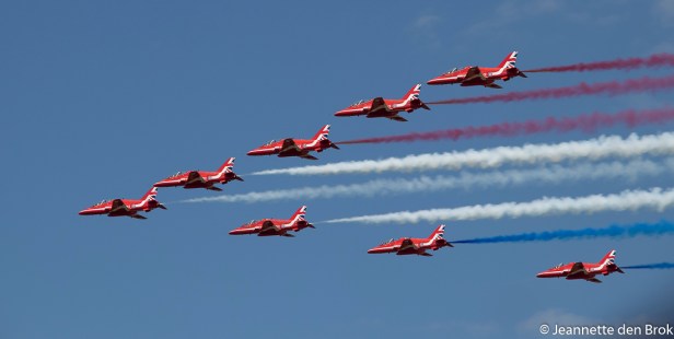 Ik was al ooit eerder op de Luchtmachtdagen in Volkel geweest, zou wel een jaartje of 2 – 3 geleden zijn dacht ik, maar dat bleken er iets meer. In 2013 waren de Luchtmachtdagen voor de laatste keer in Volkel geweest, daarna wel nog een keer in Gilze Rijen en in Leeuwarden, maar de laatste paar jaar had dit evenement helmaal niet plaatsgevonden. Maar nu was het weer zover; ik wist nog dat ik het toen erg mooi vond, dus ik hoefde er eigenlijk niet over na te denken of ik wel of niet zou gaan. En natuurlijk ging mijn camera mee ! En weer heb ik enorm genoten, met name van de show-teams. Op vrijdagmiddag waren er drie: het RAF Aerobytes display team, de Red Arrows en Patrouille Suisse. Het Red Arrows team gaf een hele mooie show weg; ze tekenden figuren in de lucht met behulp van rode, witte en blauwe rook. Maar ook het team Patrouille Suisse was zéér de moeite waard; Top Gun in Volkel ! En zelfs enkele F16’s maakten er een showtje van in hun demo-vluchten. De middag vloog voorbij en mijn camera klikte er lustig op los ….