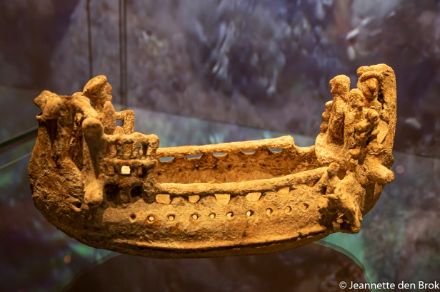 Ik woon in Berghem – bij Oss, een plaats die al héél vroeg bewoond werd, zo’n 700 jaar voor Chr. Het bewijs hiervan bevind zich in het Museum van Oudheden in Leiden. In 1933 werd (maar een paar km’s van de plek waar ik nu woon) een unieke vondst gedaan; een van de oudste ijzeren objecten ooit in Nederland gevonden, een kromgetrokken zwaard wat zich samen met een aantal andere objecten en de botresten van de (waarschijnlijke) eigenaar in een bronzen emmer bevond. De grafheuvel waar deze vondst werd gedaan is een aantal jaren geleden gedeeltelijk gerestaureerd, maar om de originele vondsten te zien moet je naar Leiden. Afgelopen Woensdag 29 januari 2020 stapte ik samen met mijn vriendin uit Kreta, die weer een paar weken in ons land was, in de trein naar Leiden waar ons eerste doel het Rijksmuseum voor Oudheden was om het originele zwaard te kunnen aanschouwen. De bedoeling was om na het Museum de stad verder te gaan bekijken. Zelf ben ik er al een aantal keren geweest en ik vind het een hele mooie stad, maar voor mijn vriendin die al 30 jaar op Kreta woont was het de eerste kennismaking met Leiden. Ik had een route uitgestippeld langs verschillende punten die ik haar wilde laten zien, maar het liep anders …. Waarom ? Nou gewoon omdat het Museum (waar ik zelf ook niet eerder geweest was) groter en indrukwekkender was dan gedacht en we er het grootste deel van de dag rondliepen. Wat een mooie en grote collectie historische schatten was er te bewonderen …. Niet alleen uit eigen land, maar ook uit Griekenland, Egypte en andere contreien uit het Midden-Oosten. Het werd echt een dagje geschiedenisles …. weet jij bijvoorbeeld wat een Fibula is ? Ik weet het nu wel. Héél erg leuk ! En toen we uiteindelijk het Museum verlieten begon het al langzamerhand donker te worden, dus de geplande stadswandeling had niet echt veel zin meer. Een klein rondje kon nog net, maar toen werd het al tijd om wat te gaan eten en na een heerlijke maaltijd bij “VIP Leiden” (Very Italian Pizza) was het de hoogste tijd om de trein weer op te zoeken terug naar Oss. Maar ons doel was geslaagd: het èchte Kromzwaard uit 700 voor Chr. en de Bronzen emmer – die overigens veel groter was dan ik me had voorgesteld – zijn voor altijd in ons geheugen gegrift.