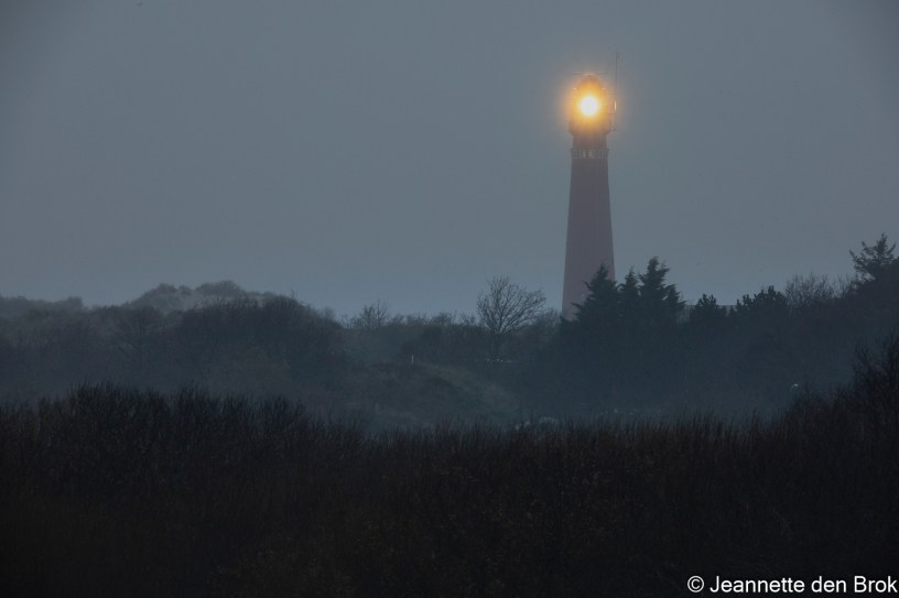 En ons doel was om juist hiervan te gaan genieten en te fotograferen. Maarrrr…. dan moet de Zon wel te zien zijn natuurlijk. En helaas wij hadden een beetje pech wat dat betreft. Het was een behoorlijk grijze week en de Zon liet zich alleen op een enkele ochtend maar heel eventjes zien. Zonsopkomsten en -ondergangen vastleggen zou het dus niet worden. Dan maar op zoek naar watervogels op het Wad, die zijn er vast -tig. Jawel hoor, die waren er volop, alleen wel erg ver weg ….. Het getijde bleek ook niet goed uit te vallen om voor gunstige vogel-foto-omstandigheden te zorgen. Maar gelukkig was het wel heel aangenaam fiets-weer. Dus alle fietspaadjes op Schiermonnikoog wel gezien, het eiland is per slot van rekening ook niet zo heel groot. En toch nog wel wat aardige foto’s kunnen maken in de duinen en op het strand. En natuurlijk de Vuurtoren …. Van alle kanten werd hij gefotografeerd. Zowel bij daglicht, schemerlicht én in het donker zodat we de lichtbundel vast konden leggen …. De Vuurtoren werd zo dus ons ultieme vakantie foto-projectje 🙂