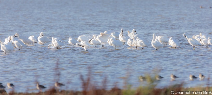 We schrijven 2 September 2022; gisteren de dag doorgebracht in HBN10 een Vogelhut in Termunten. Niet voor de eerste keer en het zal zeker ook niet de laatste keer zijn. Vanwege de reisafstand (zo’n 3 uur rijden vanaf huis) verblijven we (mijn zus en ik) als we hier zijn in een B&B vlakbij. Dan kunnen we de volgende dag ook nog even naar de openbare Vogelhut die een stukje verderop gelegen is. En tot onze verrassing zien we daar bij aankomst ‘s-morgens een grote groep Lepelaars in het water staan. Die hebben hier overnacht en wachten tot het wat warmer is om weer langzaamaan verder te trekken. Wat een geluk ! En ook de Blauwe Reiger komt even dicht voor de hut langs gewandeld.