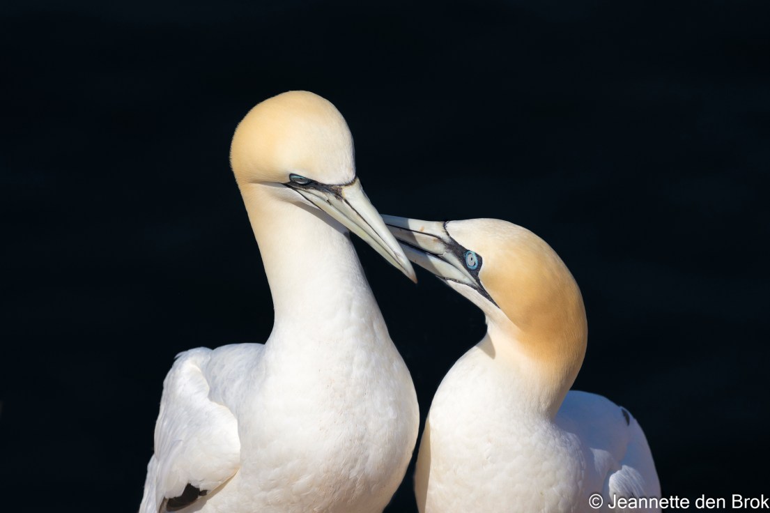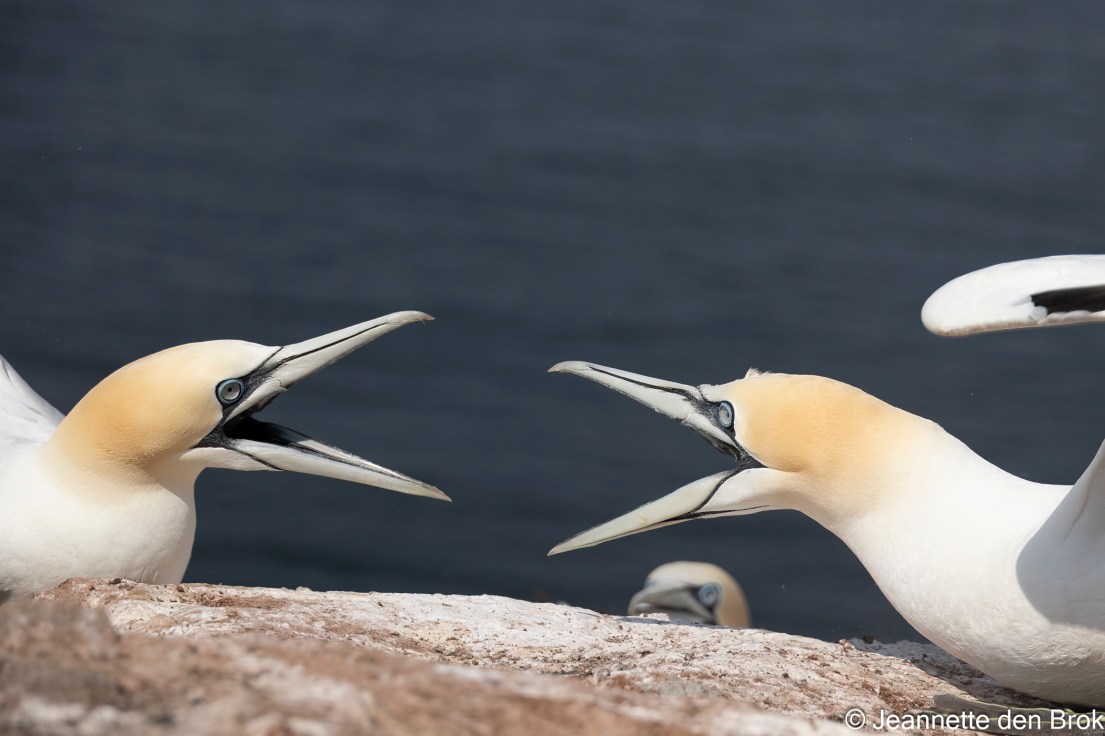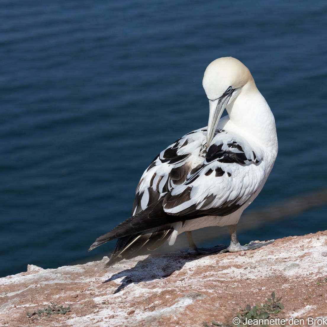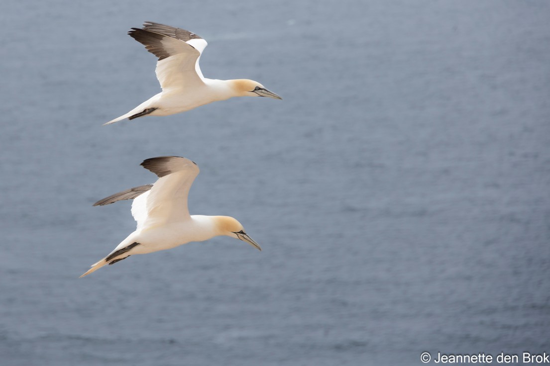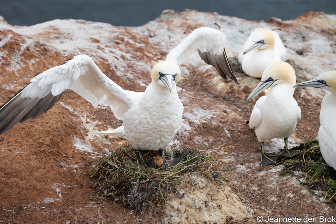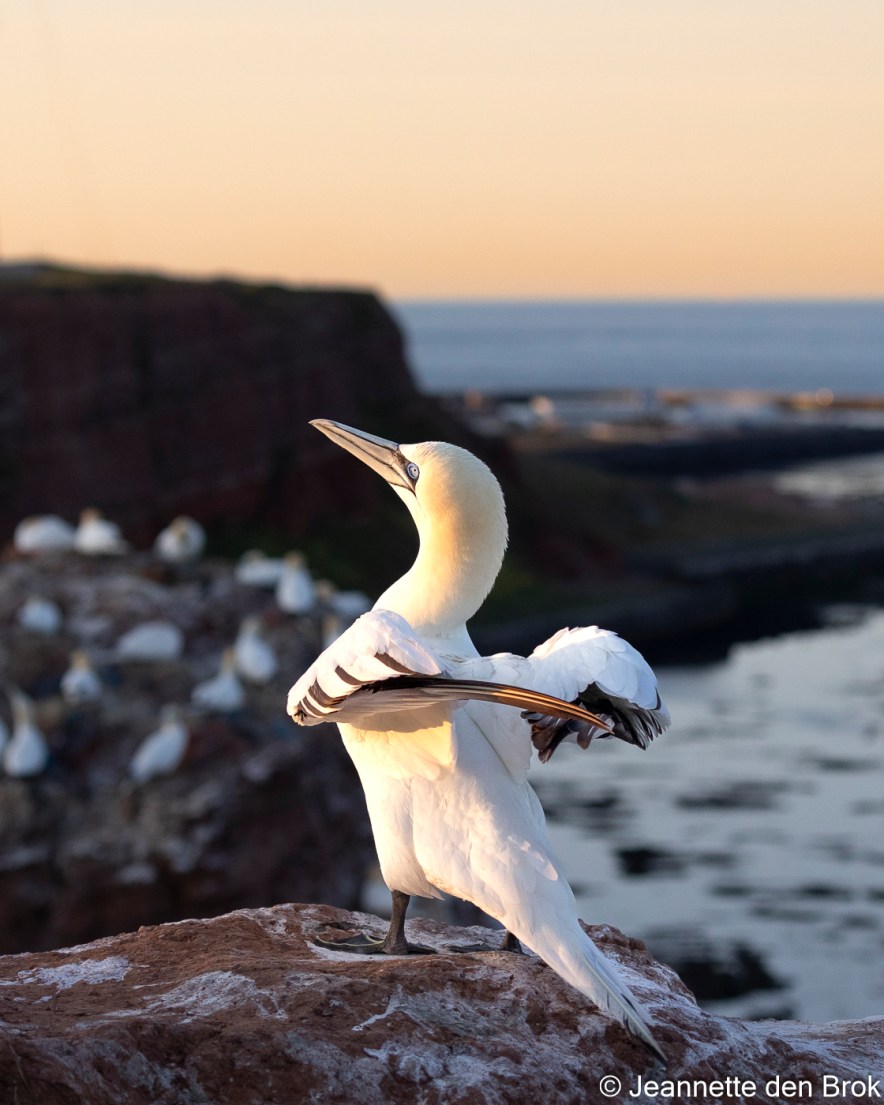 Zodra we ingecheckt hebben in ons hotel Panorama Garni en de inmiddels gearriveerde bagage wat uitgepakt, snel even wat opfrissen en omkleden, om daarna voor de eerste keer op weg te gaan naar de rotsen waar de Jan van Genten in de maanden Mei en Juni broeden. De andere maanden leven ze op zee en is de kans om ze te zien erg klein. Helaas had ook de Vogelgriep behoorlijk huis gehouden onder de Jan van Genten en was de populatie ongeveer de helft van wat er andere jaren broedt. Maar voor ons gevoel is het een drukte van jewelste; hoe moet je nu op zo’n overvolle rots vogels “isoleren” om mooie foto’s te kunnen maken ?