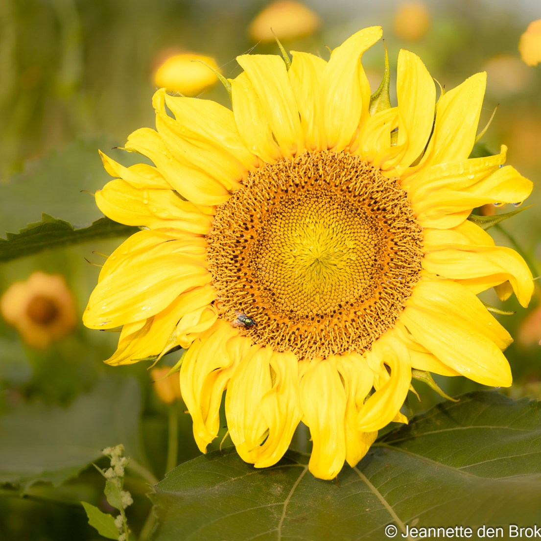Weer een stukje verder kom ik langs een gebiedje waar wilde bloemen gezaaid zijn, zodat er altijd wel iets bloeit, met de bedoeling om zoveel mogelijk insecten aan te trekken. Nu wordt het goed kijken dus of ik wat zie kruipen of vliegen. Helaas ook geen Libellen hier, maar wat ik wel leuk vind is dat er kleine zonnebloemen staan, in verschillende fasen van de groei. En op een kleine zonnebloemknop ook een wants, volgens Obsidentify zou het om een Bessenschildwants gaan, maar als ik op Internet verder zoek, lijken alle schildwantsen erg op elkaar en zou ik niet kunnen zeggen of dit inderdaad de juiste naam is.