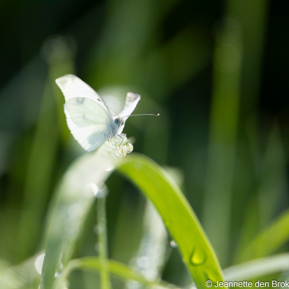 Intussen kom ik zo’n beetje aan het einde van het struinpad en draai ik om, om langzaamaan weer terug te lopen langs de beek. Ik heb nog steeds geen Libellen gezien en helaas zal dat ook zo blijven hier, misschien is het te nat voor de Libellen ? Ik weet het niet, maar een Azuurwaterjuffer vind ik wel en een eindje verder fladderen 2 Klein geaderd Witjes vrolijk rond. Deze weet ik nog wel vast te leggen en dan ben ik weer aan het begin van het pad.