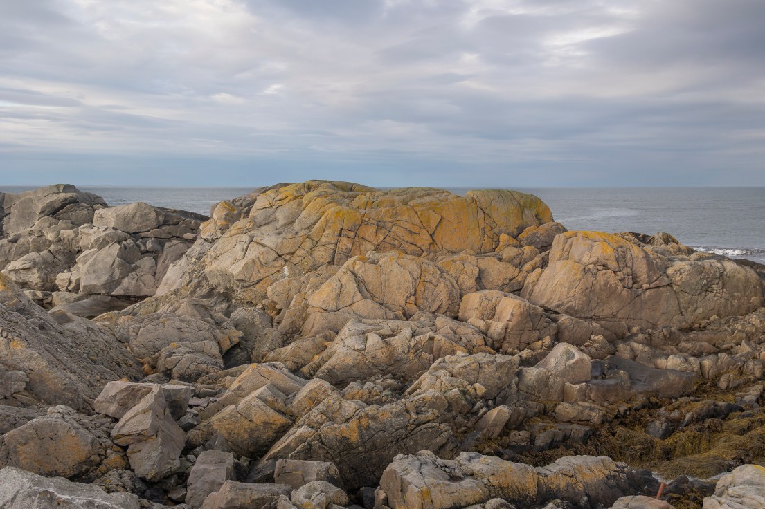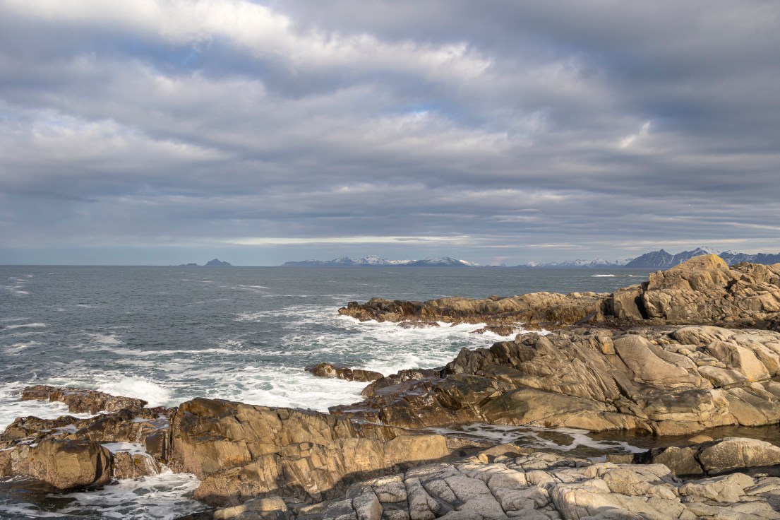 Na onze eerste koffie-pauze in Laukvik gingen we naar de haven voor onze volgende foto-sessie. Hier een enkele meters hoge, lange betonnen pier met aan weerszijden rotsblokken en halverwege een klein vuurtorentje. Vanaf deze hoge pier kon je prachtige sea-scapes maken, alleen waren sommige rotsblokken zo groot dat ze je uitzicht belemmerden. Maar goed, je kan natuurlijk ook gewoon over de rotsen gaan klauteren om een punt te zoeken waar je voorbij dat grote blok kunt fotograferen. Uuhhh …. Maar met een zware rugzak op en een camera om je nek is het wel prettig om daar een beetje hulp bij te hebben, want eerlijk gezegd vond ik dat toch wel een beetje eng. Na de eerste sea-scapes even tijd voor een broodje en daarna weer verder, nu met het statief erbij en filters om met lange sluitertijden aan de slag te gaan. Ik ga daarmee maar niet héél ver klauteren over de rotsblokken, maar zoek een plekje uit waar dat niet nodig is. Daarna wandel ik weer wat verder om een eind van de pier af ook een erg mooi plekje te vinden.