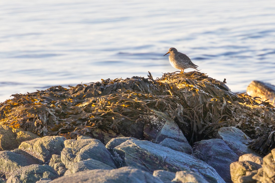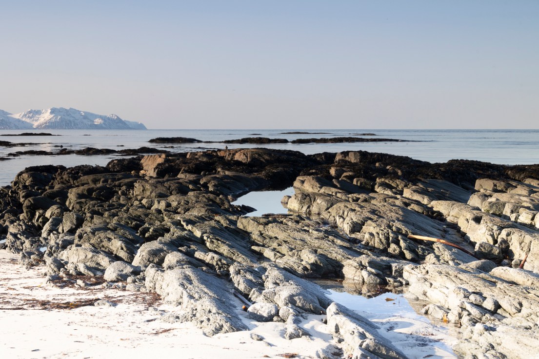 De volgende dag werd met wederom eerst een stop op “de Dam” het Noorden van het eiland bezocht, Sanden Nordland bij Sand kirke. Hier een mooi strandje, waar ook die leuke Paarse Strandlopers gebruik van maakten, rotsen en bergen op de achtergrond. Wederom dus een prachtige omgeving met voor mij bijna alle ingrediënten aanwezig om aan de slag te gaan met de camera. Bijna ? Ja, ook hier geen sneeuw om in rond te struinen, dat miste ik toch wel deze week. In plaats hiervan prachtig mooi weer; volop Zon en een heerlijke temperatuur, waarbij de jas zelfs uit kon ….