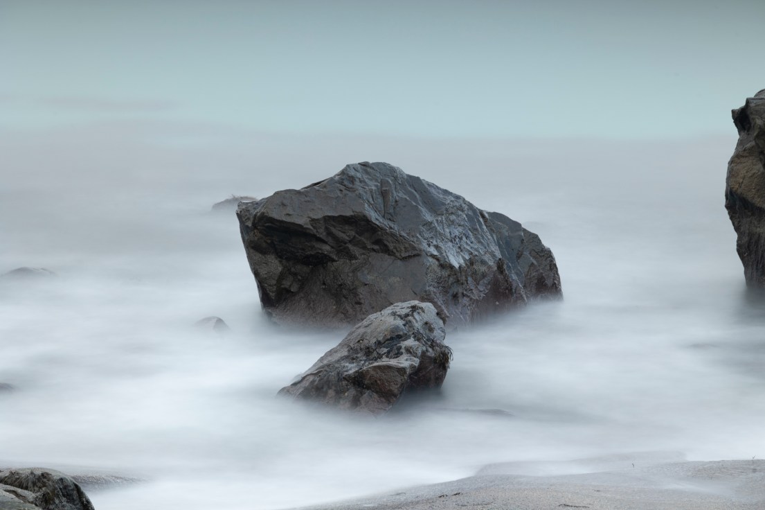 Omdat we natuurlijk nog steeds een reisgenoot misten, wilde onze reisleider vandaag (Woensdag) naar het zuidelijke eiland van de Lofoten rijden, om hem een bezoek te brengen in het ziekenhuis. Ons zou hij dan onderweg droppen op het strand van Uttakleiv. Hij kon me bijna geen groter plezier doen dan dat ! Hier was ik 6 jaar geleden ook en herinnerde me deze plek als een van de mooiste waar ik ooit was geweest. Op weg daarheen eerst nog even een kleine pauze bij …. geen idee welk plaatsje dit was, maar die mistbank trok de aandacht. Daarna op Uttakleiv eerst op zoek naar het Dragon’s eye, maar door een laag ijs erin, zag het er niet echt afschrikwekkend uit en kon ik er helaas nog geen mooie foto van maken 😦 Niet getreurd, ik kon hier heerlijk aan de slag met lange sluitertijden ! En als we dan nadat de reisleider terug was, ook nog even het strand van Haukland aandoen, kan mijn dag niet meer stuk, zelfs al waren de omstandigheden (vooral de lucht) 6 jaar geleden mooier.