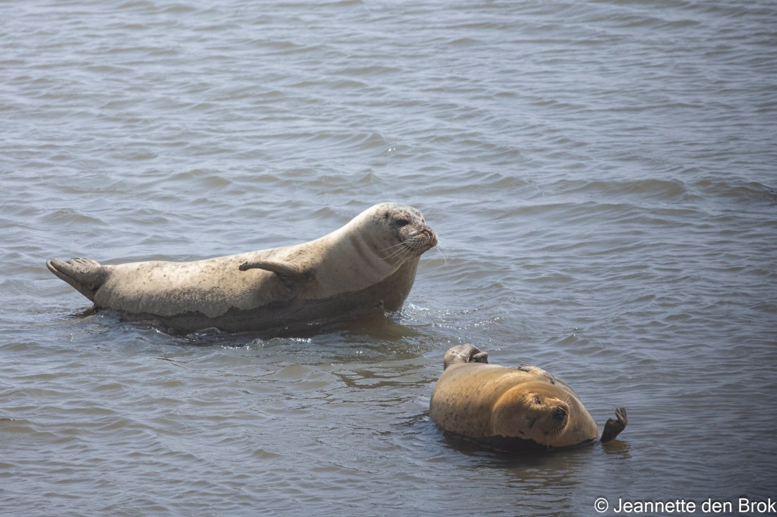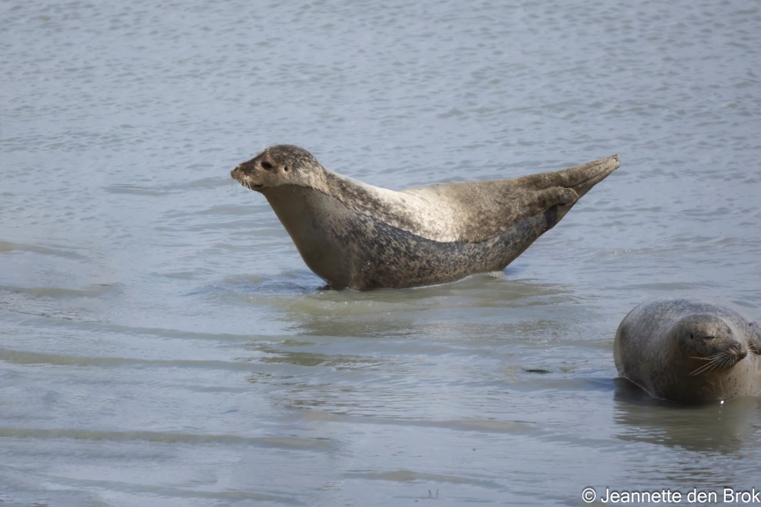 Ook loop ik ook nog even naar de Zeehondenkijkwand welke van het voor- tot najaar op de Zeedijk in Termunten bij de Punt van Reide wordt opgesteld. Van achter deze wand kun je ongezien de zeehonden observeren die hier dagelijks bij hoogwater het strand onder aan de dijk opzoeken om te rusten en te zonnebaden. Hier dus weinig actie, maar met een beetje geluk zitten er wel enkele (in de winter geboren) pups bij ….