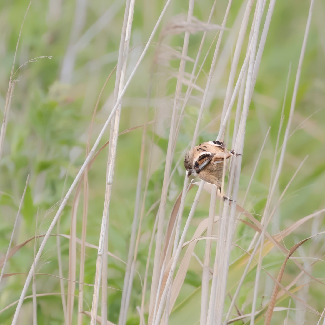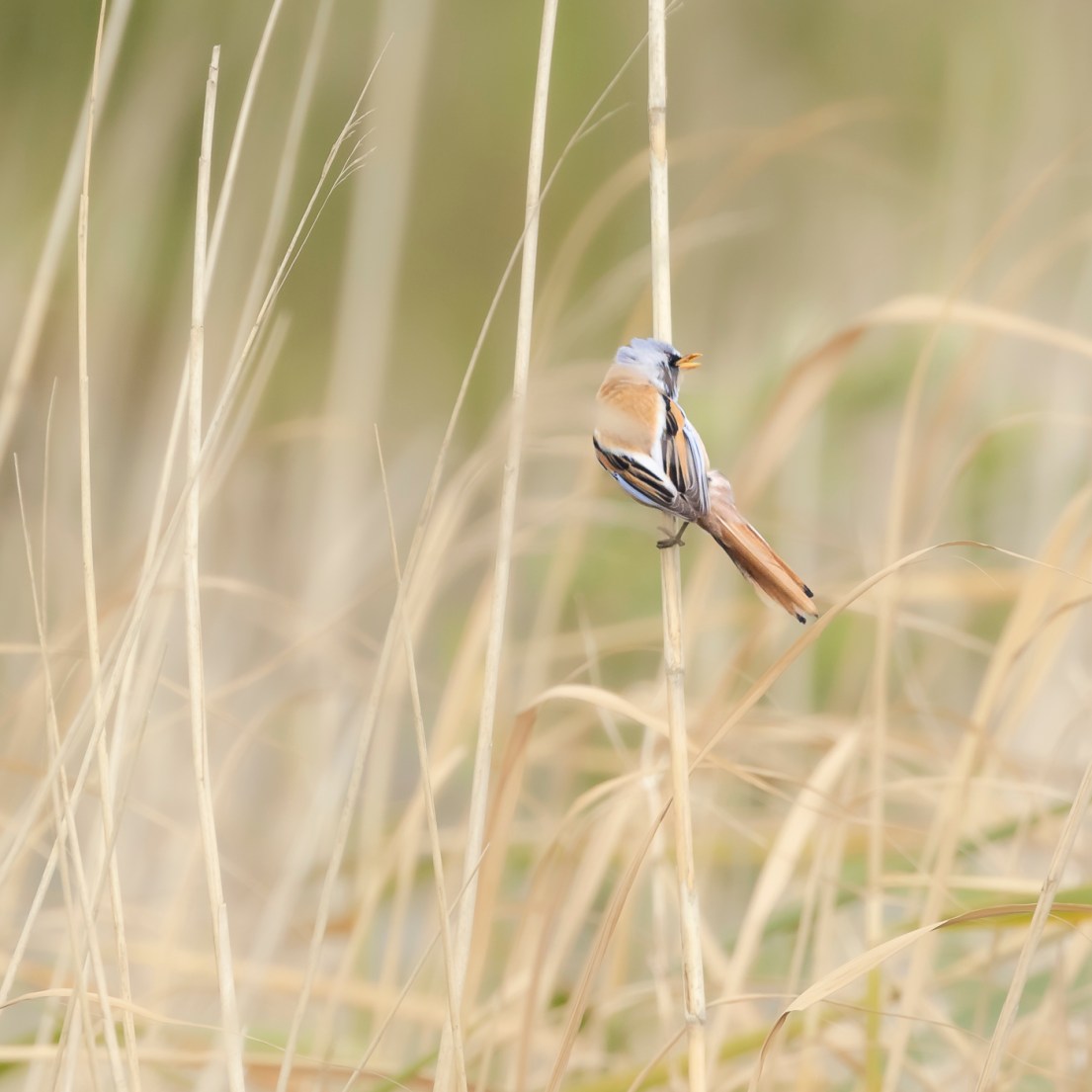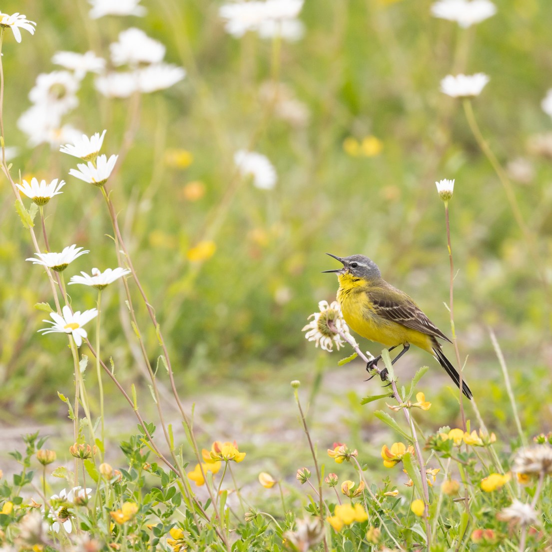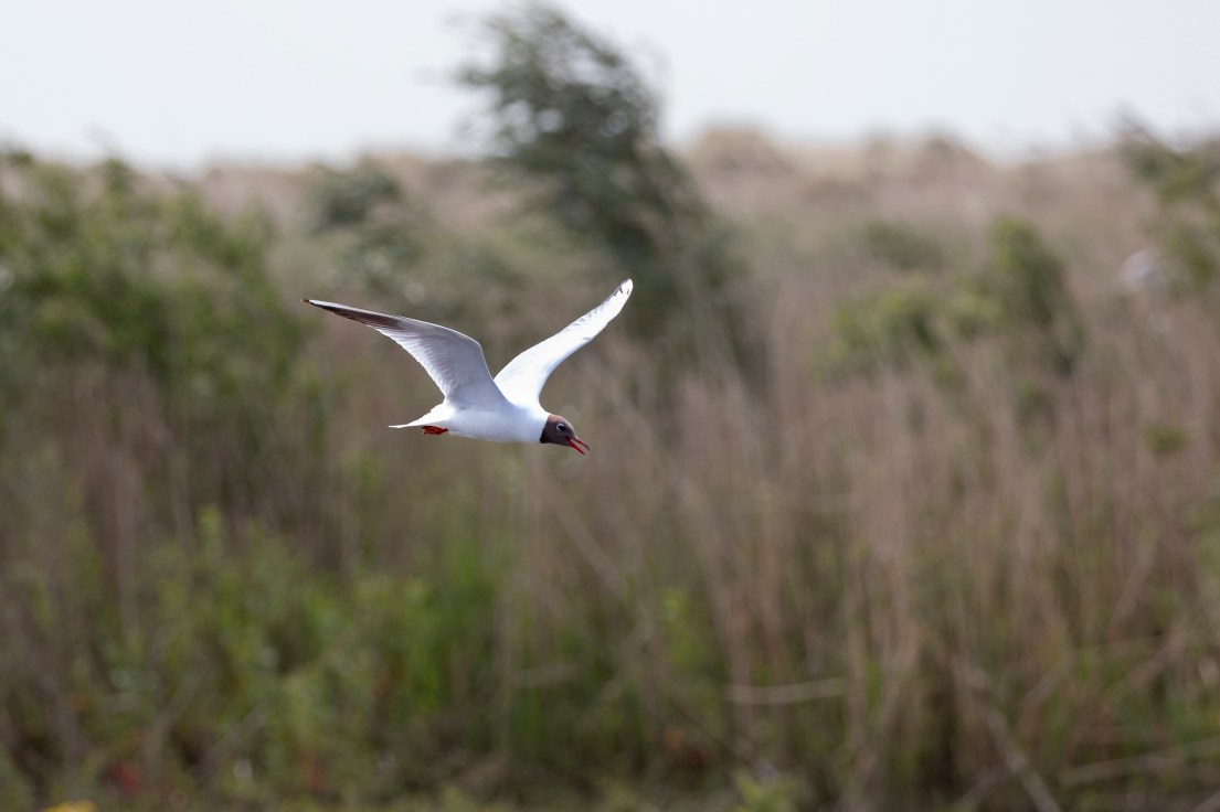 Deze keer – 2 Juni 2024 – ging ik met de IVN fotowerkgroep op stap, met eigenlijk maar één doelsoort voor ogen: de Baardmannetjes. De grootste populatie Baardmannetjes in Nederland bevind zich op de Marker Wadden zoals ik enkele weken geleden hoorde van een gids bij een wandeling met “Dagje in de Natuur”, dus mijn verwachtingen waren hoog gespannen. Ook vandaag waaide het best flink door op het eiland, maar gelukkig deerde dit de meeste vogelsoorten niet. Al vrij snel stuitte ik tijdens mijn wandeling op de Gele Kwikstaart die het hoogste lied zong. Even later volgde Witte Kwikstaart, maar die was wat schuchterder. Kokmeeuwen en Visdiefjes vlogen continu boven mijn hoofd rond, waarschijnlijk op zoek naar voedsel voor hun jongen, maar ook om de Bruine Kiekendief op afstand te houden, die zij natuurlijk niet in de buurt van hun nesten wilden hebben. Hij is dan ook best indrukwekkend, vooral als hij vrij kort boven je hoofd over komt gevlogen ….