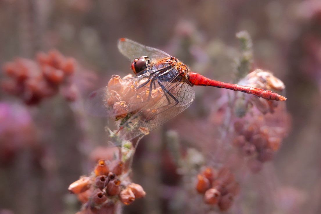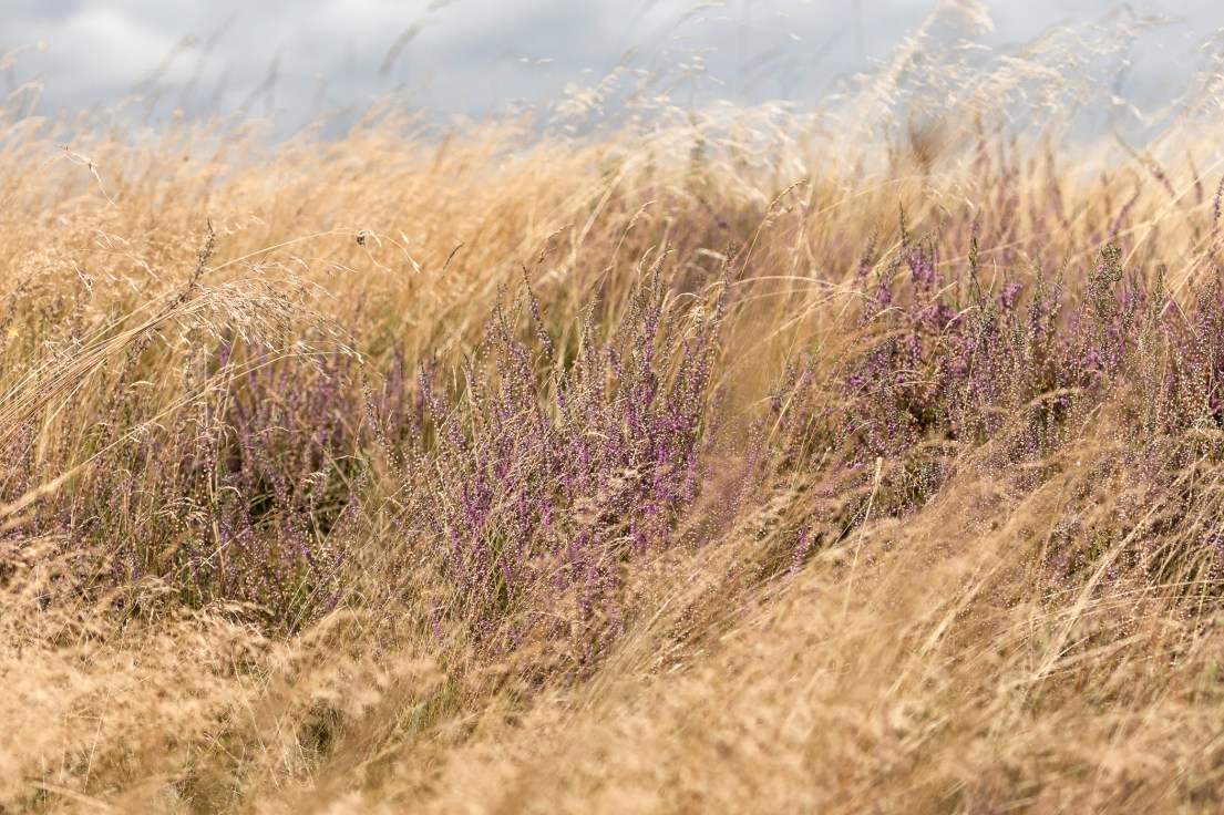 Maar ik moet nog een flink stuk wandelen, dus kan niet al te lang hier blijven hangen. Dus weer door langs een groot Heideveld. Omdat het behoorlijk hard waait is Macro-foto’s maken van de Heide niet echt een optie, maar misschien is het wel leuk om met wat langere sluitertijden te werken, zodat je de heide en het riet ziet wuiven in de wind. Dat is weer eens wat anders ….
