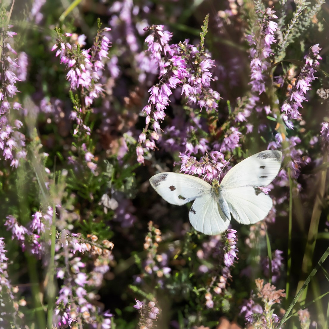 Dan weer door met de wandeling en op zoek naar vlinders in de Heide. Ik kom helaas niet meer tegen dan een enkel Koolwitje en een Geaderd Witje.