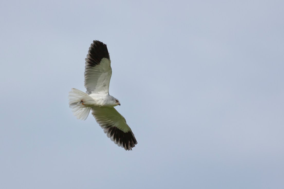 En nadat de Kerkuil weg was gebracht, kwam even later de Grijze Wouw aangevlogen. Dat was voor mij wel een traktatie, deze mooie vogel met zijn prachtige rode ogen ! De Grijze Wouw komt vooral in warmere streken voor, zoals Spanje, maar ook in Nederland wordt deze steeds vaker gezien. Maar voor mij was het mijn eerste kennismaking met deze vogel. Vanwege die mooie ogen, mogen portretjes niet ontbreken, maar met zijn lange zweefvluchten is de vogel bij uitstek geschikt om vliegbeelden te maken.