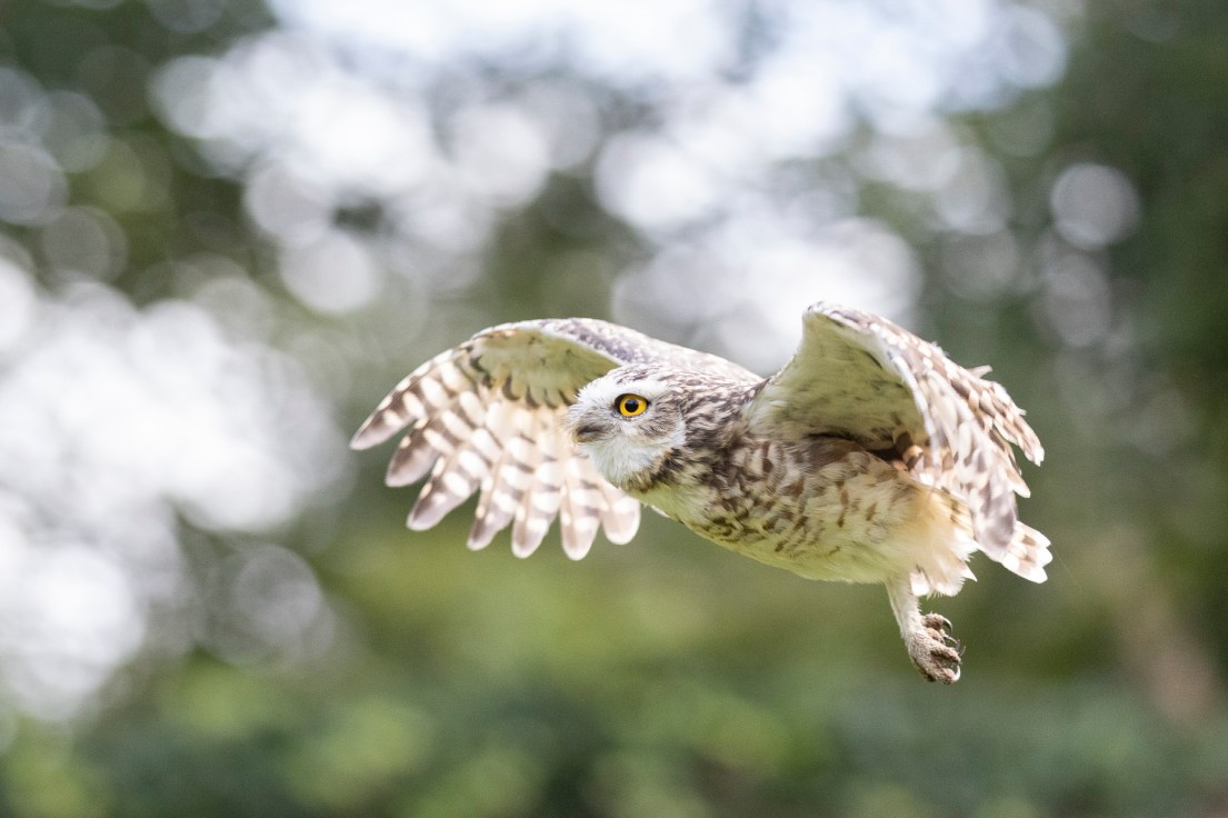 Bij Topvogel in Diessen zouden we vliegbeelden gaan maken van de Roofvogels. Vliegende vogels fotograferen is bijna een vak apart, maar daar kon nu goed mee geoefend worden. Hoe groter de vogel, des te trager vaak de vleugelslag en des te beter je de vogel kunt volgen en focussen. Maar de ochtend begon (na de koffie uiteraard) met een van de kleinste Uilensoorten; een 2-tal Holenuiltjes zat ons al op te wachten en we konden meteen aan de slag met Portretfoto’s van dit grappige Uiltje. En natuurlijk zorgde de Valkenier er ook voor dat de vogel van de ene paal naar de andere vloog, zodat we aan de slag konden met vliegbeelden, waarvoor we genoeg tijd kregen om volop te oefenen. Ook liet hij de Uiltjes rennen over het veld, wat er gewoonweg hilarisch uitzag ….