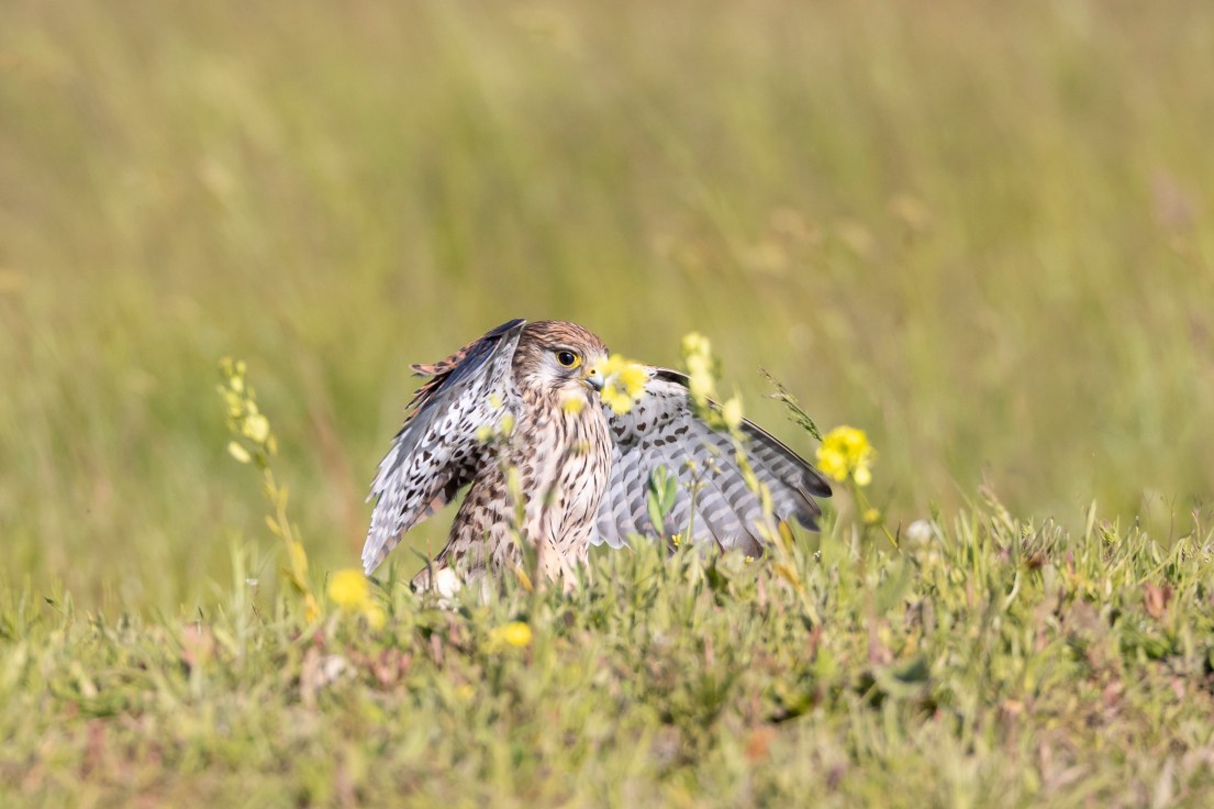 Maar valt de Torenvalk ook onder de Weidevogels ? Want die speelde wel de hoofdrol vandaag. De hele dag vloog deze af en aan om telkens met één meelworm in zijn snavel naar zijn nestje te gaan om zijn kroost te voeren. De eigenaar van de hut had al aangegeven dat deze de dag ervoor ongeveer 631 x heen en weer gevlogen had en vroeg daarom of we genoeg meelwormen bij hadden 😉 Nou, ik heb ze niet geteld en ook de keren dat de Torenvalk voorbij kwam niet, maar gezien het aantal foto’s wat ik had …. Veel dus.