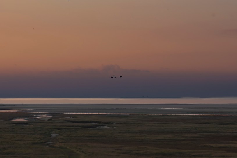 Eind van de middag arriveerde ik bij de Triaan waar intussen iedereen al buiten op het terras aan de borrel zat en waar ik eigenlijk direct bij kon aansluiten. Maar eerst maar eens even mijn spullen op de kamer zetten, mijn bed opmaken, mezelf wat opfrissen en de batterij uit de camera op de lader leggen. Kort daarna werd de soep opgediend in de grote gezamenlijke ruimte en die liet zich goed smaken, evenals de broodjes kroket. tijdens het eten werden de eerste plannen voor het weekend besproken. Vanavond wilden we in ieder geval eens gaan kijken of we een mooie Zonsondergang zouden krijgen. Hiervoor gingen we niet al te ver weg naar Natuurgebied De Slufter, waar we hoopten vanaf het uitzichtpunt mooie foto’s te kunnen maken. Helaas zorgde een brede band bewolking ervoor dat de Zon al eerder verdwenen was, maar toch kwam er best wel wat kleur in de lucht. Geen “vuurwerk”, maar misschien morgenavond wel ….
