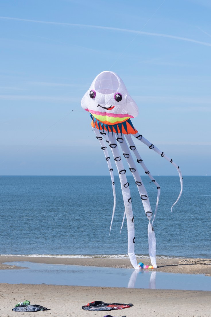 Nadat Jan weer afscheid van ons had genomen ging iedereen weer zijn eigen weg. Zelf ging ik met een paar anderen naar het Strand bij Paal 17. We hadden inmiddels via Whatsapp doorgekregen dat hier een evenement bezig was en er tal van prachtige vliegers in de lucht werden gehouden. Niet echt een onderwerp voor een Natuurfotograaf, maar wel héél leuk om eens te zien. Het was super lekker weer, volop zon en een aangename temperatuur. Helaas voor de vliegeraars kwam de wind van achter de duinen waardoor zij het best moeilijk hadden om de grote vliegers in de lucht te houden, maar wij hebben heerlijk even op het strand gezeten en genoten van het festival.